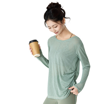 Esportes regata com pregas laterais para emagrecimento e escondendo gordura Lulu Yoga Top leve solto respirável manga comprida t-shirt